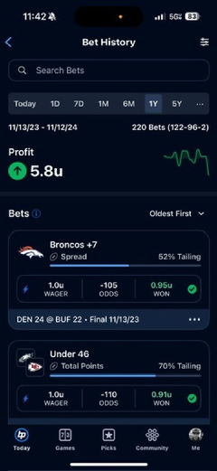 Get an at-a-glance view into your bets, view upcoming game picks and projections, and discover picks to tail.